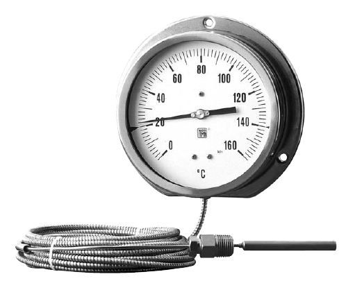 此外,還應(yīng)有足夠的機(jī)械強(qiáng)度,以便在較薄的容器壁上承受較大的內(nèi)外壓力差。通常,用不銹鋼或黃銅制造溫包,黃銅只能用在非腐蝕性介質(zhì)里。當(dāng)溫包受熱后,將使內(nèi)部工作物質(zhì)溫度升高而壓力增大,此壓力經(jīng)毛細(xì)管傳到彈簧管內(nèi),使彈簧管產(chǎn)生變形,并由傳動(dòng)系統(tǒng)帶動(dòng)指針,指示相應(yīng)的溫度值。